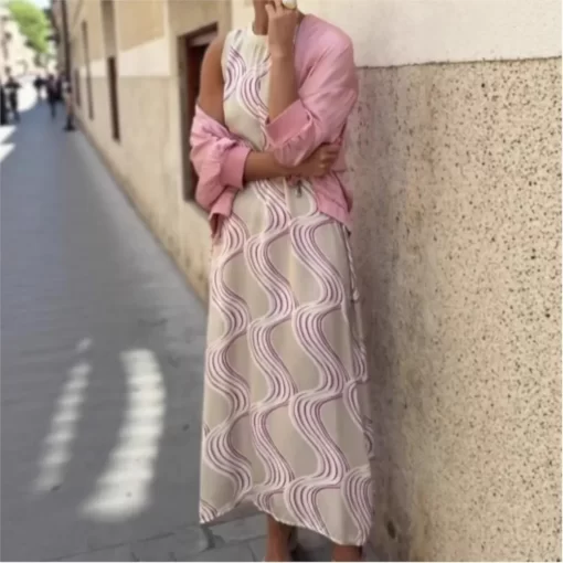 2025 Women’s Two-piece Sets Dress Sleeveless Round-neck Ankle-length Sundress + Cape Coat New Bohemian Printed Vacation Dress