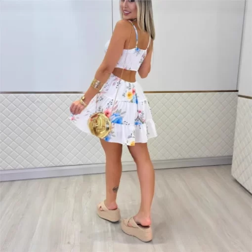 Summer Sexy Floral Mini Dresses 2025 Women’s Fashion Lace-Up Sleeveless Backless Wrap Slim Ruffles Sundress Boho Beach Holiday